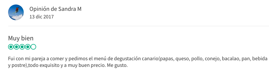 “Podrá degustar nuestro menú especial de cocina canaria que ofrecemos diariamente”