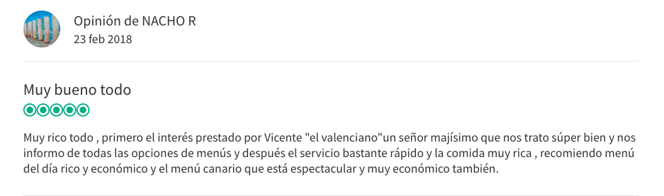 “Podrá degustar nuestro menú especial de cocina canaria que ofrecemos diariamente”